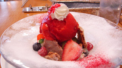 上がイチゴのシャーベット。下に抹茶のアイス。とってもさっぱりで美味しかったvv