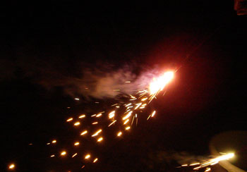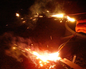 で、一旦片付けて、日も落ちたのでお庭で花火。