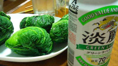 今日はタコ焼き!となっぱ飯とビール♪