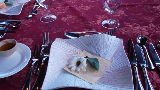 テーブルセッティングは、お皿の上に和紙とお花。カワイイです。