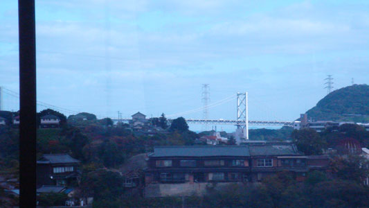 右の写真は関門橋です。左は横の窓、右は正面の窓の景色。