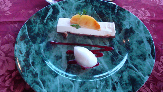 デザート。クリームチーズのケーキ。台座はビスケットとかじゃなくて生チョコ!
