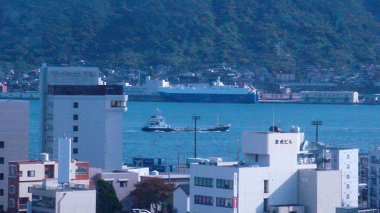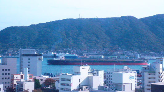 関門海峡を臨めます。向こうは門司港。