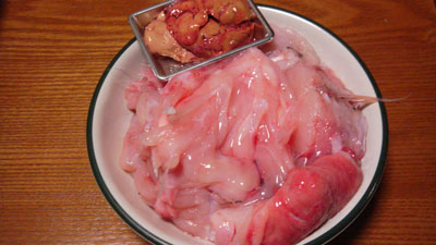 こないだゲットした仙崎産のタコ(まるごと一匹。お家で塩ゆでにして冷凍。しばらく美味しくいただいた)が相当ウマかったので、またないかな~と覗いたけど、なかった・・・。そのかわり水イカが綺麗だったので、母が「刺身で食べる!」と嬉々として購入。