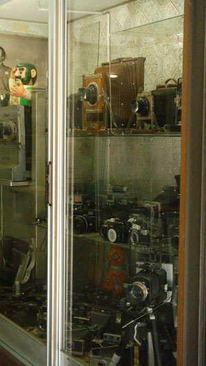 ショーケースの中に、古いカメラがたくさん並んでました。