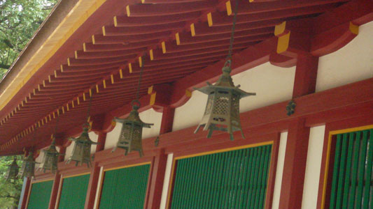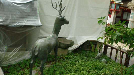 裏を回って境内に戻ろうとすると遭遇する鹿の親子。なんでなのかは工事中で見られなかった。(笑)