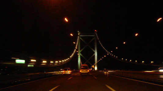 関門橋。やっと海を渡って本州です。ただいま!(現在関門トンネル工事中)