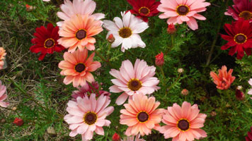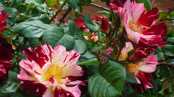 そういえば、今日は母とちょっとお買い物に出たのですが、近くにある工務店のショールームの周辺にいろんなバラが咲き乱れておりました。