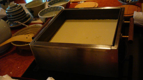 真ん中のヒートクッカーの上でくつくつ出来上がったお豆腐。三人前です。